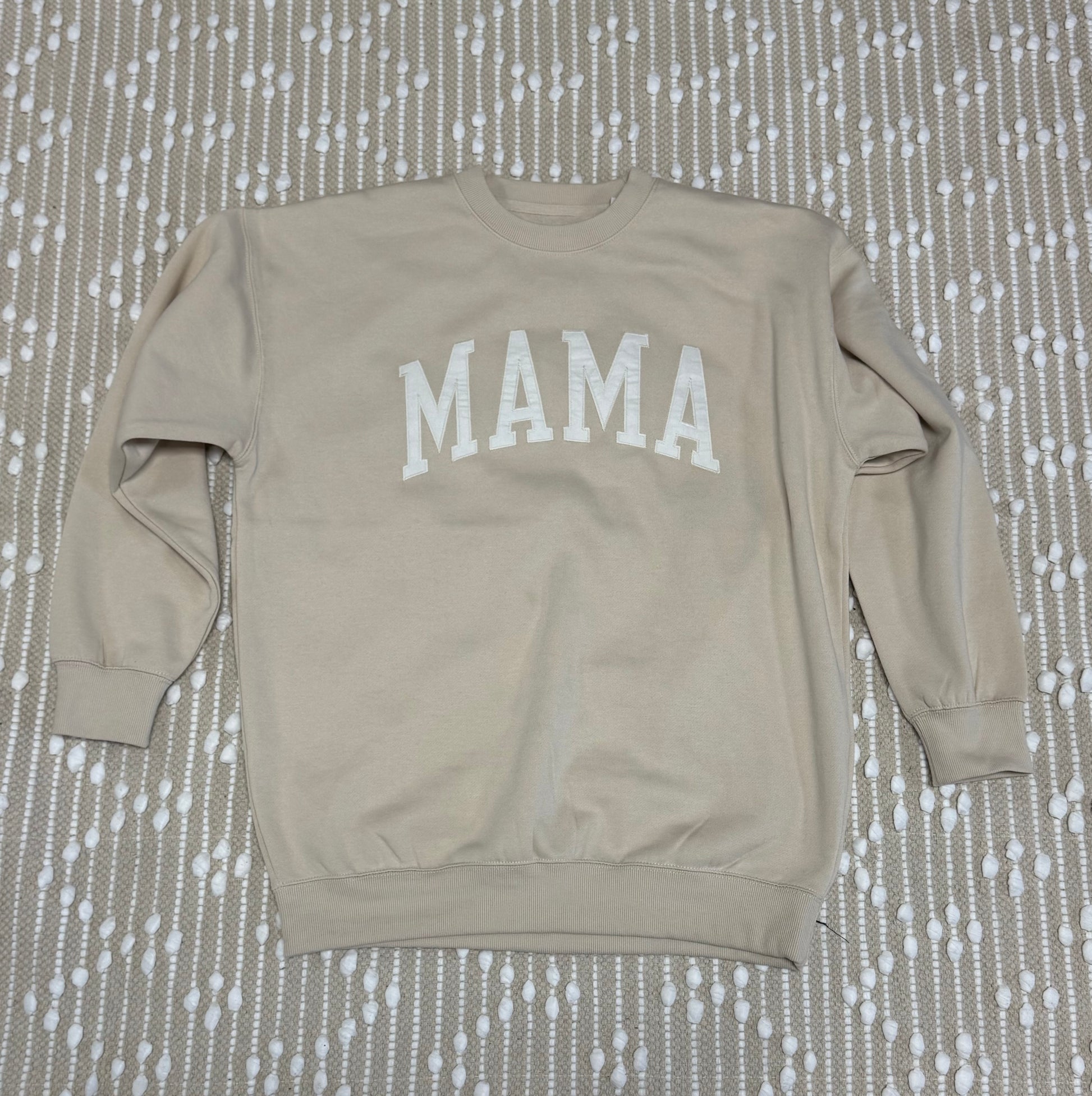 -Basic fleece relaxed fit crew neck sweatshirt with Mama embroidered patch